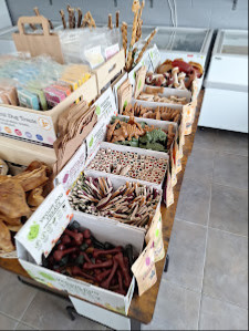 The store specializes in pet care and offers a variety of natural, high-quality treats and chews for dogs.